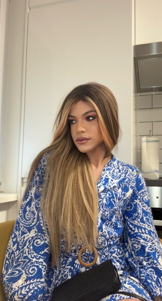 Haare:blond, rückenlang, glatt