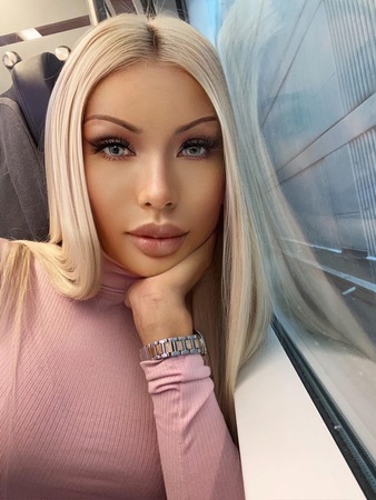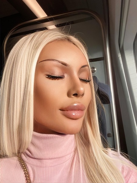 Haare:blond, rückenlang
