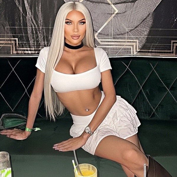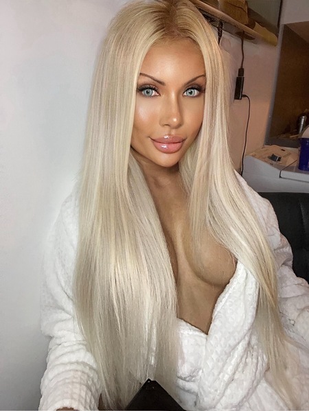 Haare:blond, rückenlang