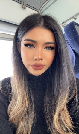 Haare:dunkelbraun, rückenlang, glatt